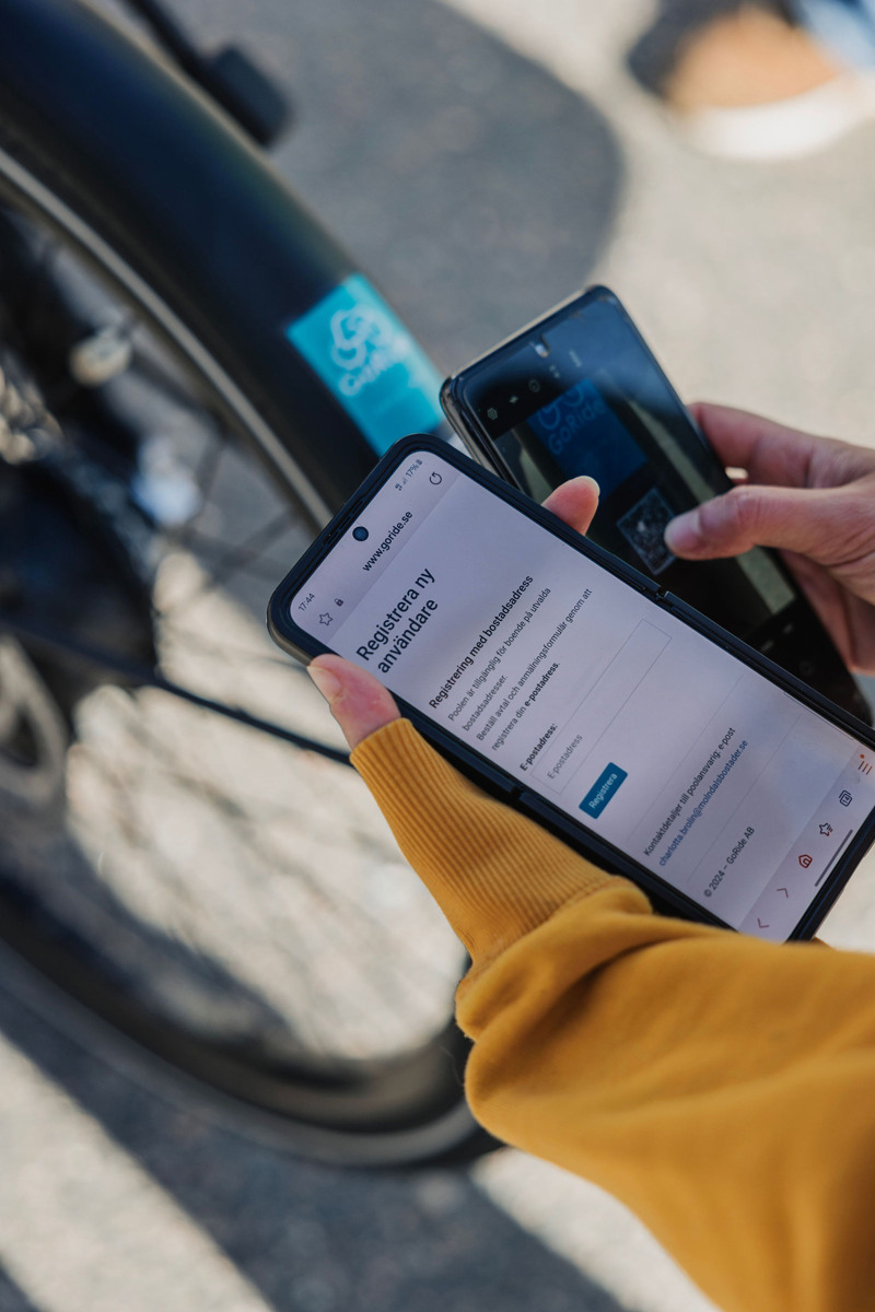 Ladda ner GoRide appen på Google Play eller App Store för bokning och tillgång till cykeln.