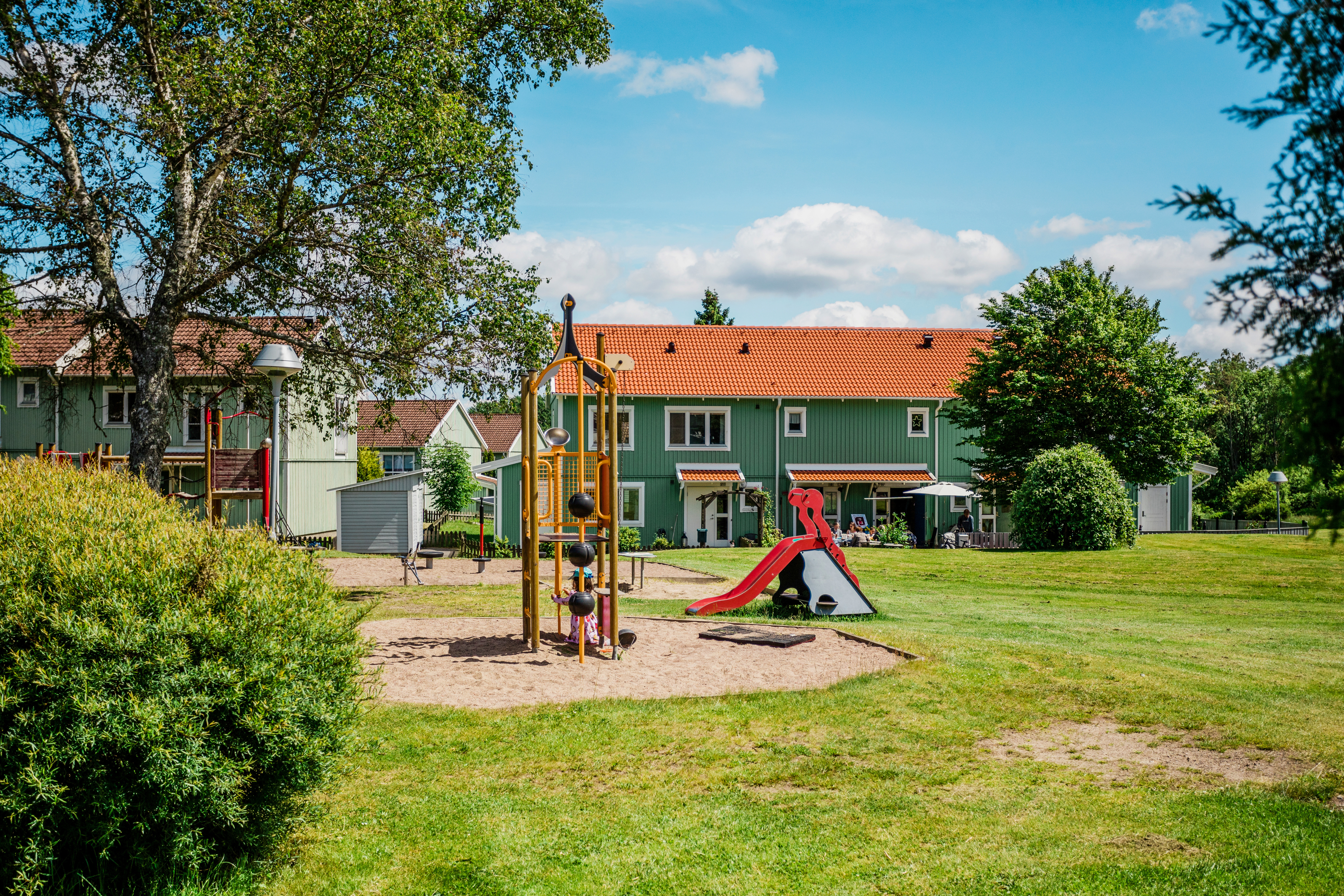 I den västra delen av Kållered ligger de trivsamma tvåvåningshusen med radhuskänsla. Lugnt, grönt och avskilt. Det omtyckta bostadsområdet Kålleredgården är byggt år 1989 och har varit i behov av ett rejält lyft. Vi gör en utvändig renovering på husen då de befintliga fasaderna har uppnått sin ekonomiska och tekniska livslängd. Dessutom passar vi på att införa fjärrvärme efter hyresgästernas egna önskemål.